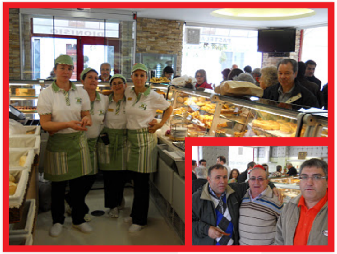 A padaria/pastelaria Dionisio da rua dr. Luis Carrisso entrou em obras no passado mês, tendo hoje reaberto com um renovado visual, mais alegre e claro. Dionisio Marques Agostinho, ladeado pelo filho e abraçado por um amigo, garante assim mais condições no atendimento e na qualidade que sempre têm norteado a conceituada firma. (Clicar na foto para melhor a visualizar)