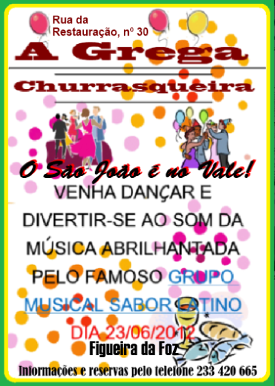 António e Natália, os proprietários da famosa churrasqueira/restaurante A Grega, garantem que será uma noite onde não irá faltar o caldo verde e as febras e, claro está, a saborosa sardinha assada dos mares da Figueira!