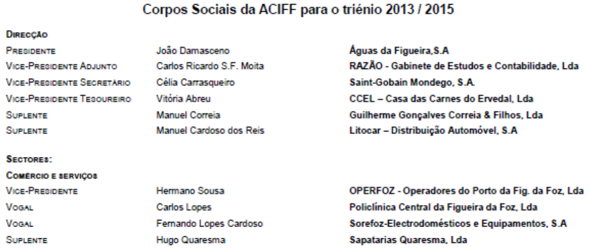 Por outro lado realizou-se no dia 6 de fevereiro, nas instalações da Incubadora de Empresas da Figueira da Foz, a Assembleia Geral Eleitoral da Associação Comercial e Industrial da Figueira da Foz.